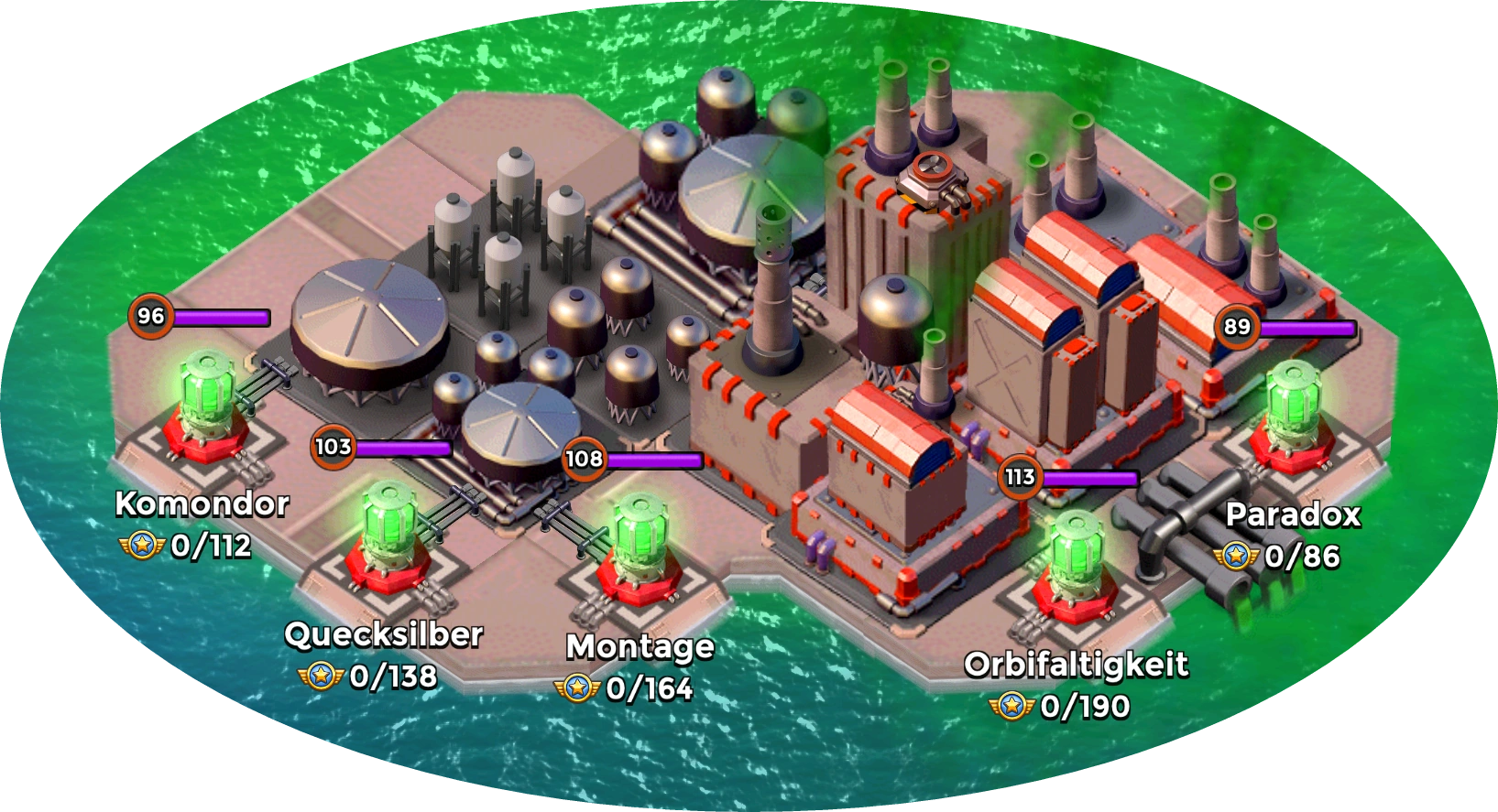 - Colonel Gearhearts Kriegsfarbik wird nach Zerstören von Hammerman's HQ-Level 45 freigeschaltet. Danach erscheint ihr Event in einem sechstätigen Zyklus einmal.