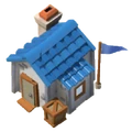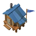 - Auf Level 3 wird das Wohngebäude zu einem Holzhaus mit blauem Dach. Die Planken werden entfernt, und die Flagge auf der Seite bewegt sich.
