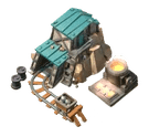 Au niveau 9, le toit est encore plus renforcé et le four dispose maintenant de deux petites cheminées, le creuset en fer est plus haut, une troisième turbine apparaît à ses côtés et le système est maintenant automatisé avec un tapis roulant. Trois petits tuyaux relient la mine avec le four.