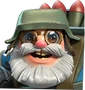 - The Bombardier wields a small mortar which has been modified to double as a walking stick, bolstered by a tennis ball under it.