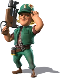 Sgt. Brick is a Hero that aids you in battle with her abilities.