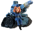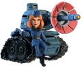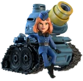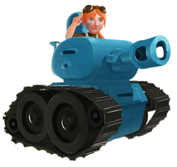- The Tank is a blue robust armored vehicle with a turret, main gun and large muzzle brake on the barrel. It is equipped with black caterpillar tracks each held up by two large road wheels and two smaller sprocket wheels. The tanker is a red-headed woman in a blue uniform with a small blue garrison cap.