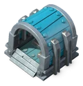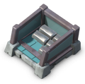 Initially, the Iron Storage is a teal-colored iron repository with walls on three sides. The tops of the walls are reinforced.